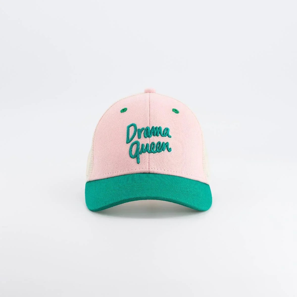 Couleurs : rose, visière verte, filet blanc