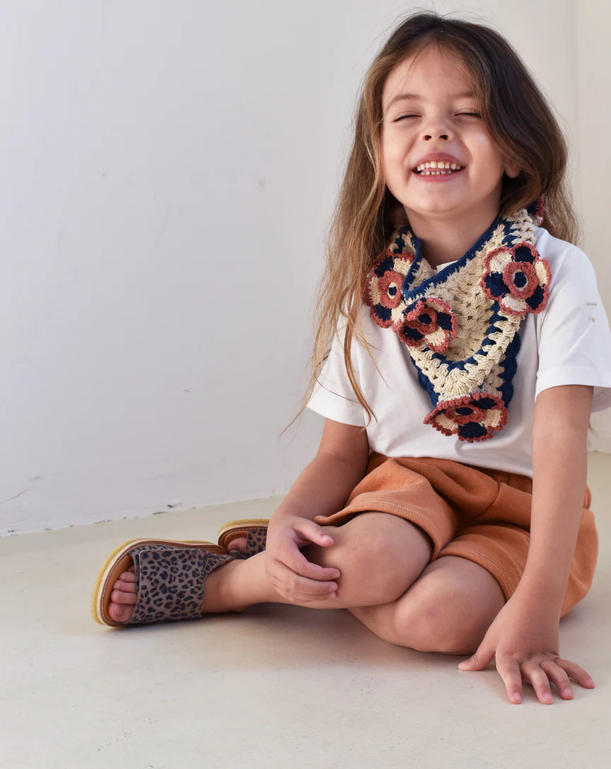 Ces sandales « du Veda » sont conçues aussi bien pour les garçons que pour les filles. Elles sont fabriquées en cuir suédé de première qualité. La semelle est en crêpe naturel, confortable et souple. La sandale est dotée d’une large bande velcro réglable sur le dessus du pied et à la cheville, ce qui lui assure un bon maintien.
