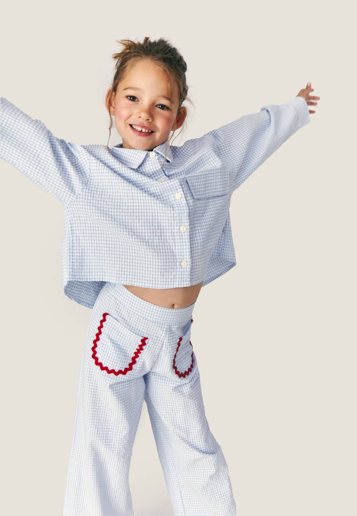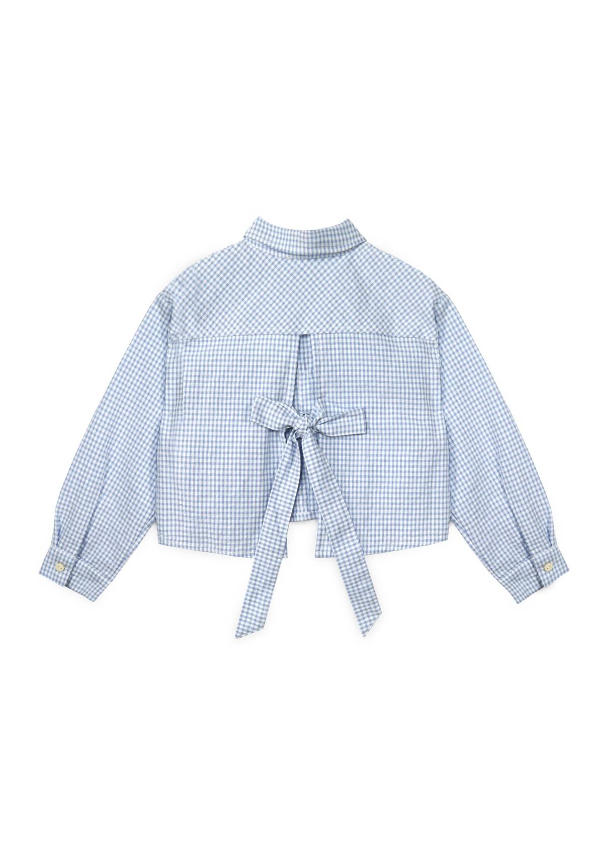 Cette chemise décontractée explore les volumes fluides grâce à un nœud oversize au dos. Une bordure en ruban ondulé apporte une touche de couleur inattendue à l’ensemble. – Col pointu – Épaules tombantes – Manches longues – Poignets boutonnés – Nœud au dos – Fermeture à boutons