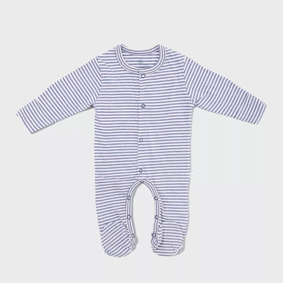 ORGANICERA | Baby footed sleepsuit Stripe Indigo melange