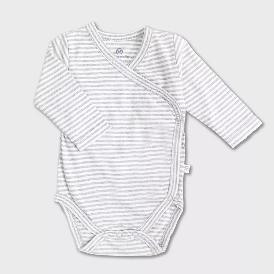 ORGANICERA | Longsleeve Kimono Baby body Stripe Grey melange