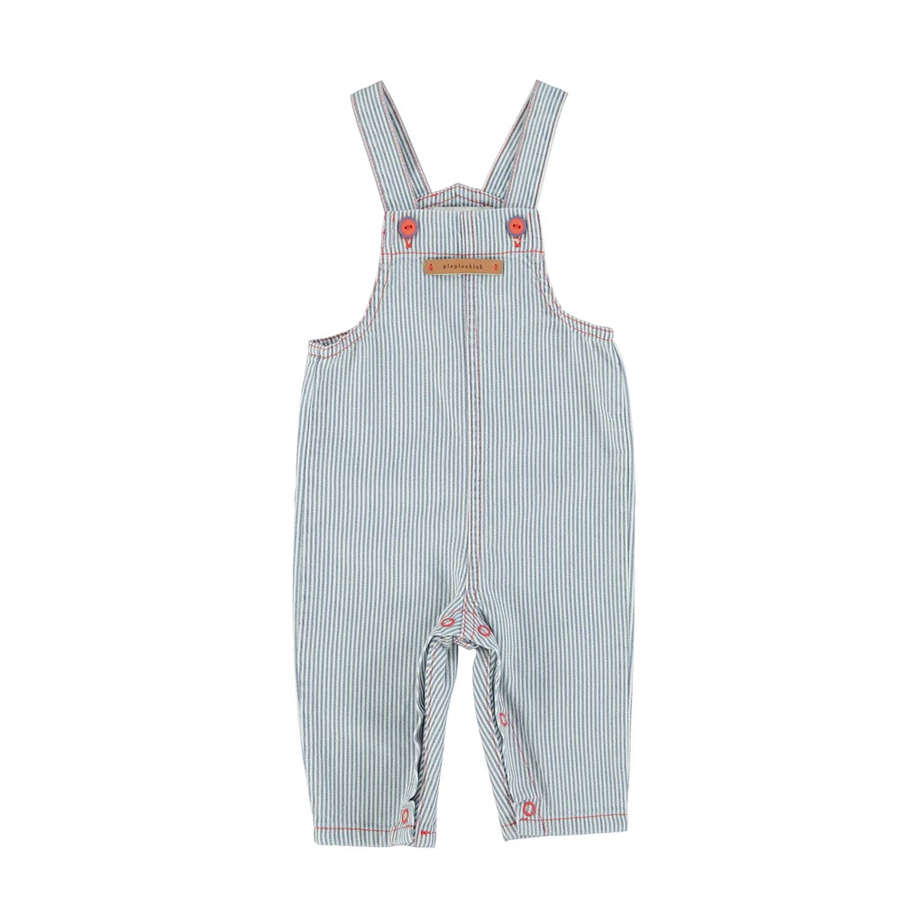 PIUPIUCHICK BABY | Piupiuchick Ecru W/ Indigo Stripes Baby Dungarees