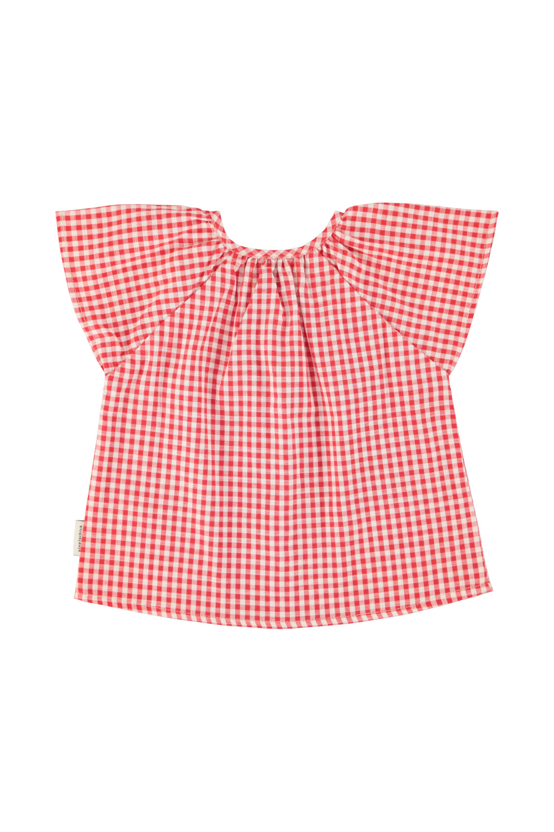 PIUPIUCHICK | Blouse w/ butterfly sleeves | red & ecru checkered
